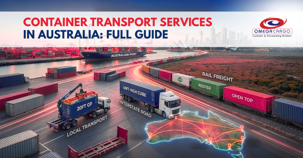 This guide focuses on domestic container transport within Australia — moving containers by road and rail between Australian locations. International container shipping (importing from China, exporting to the USA, etc.) is a separate service handled by sea freight and freight forwarding companies like Omega Cargo's sea freight service. Both services often connect — your imported container arrives at an Australian port and then needs domestic container transport to reach your warehouse.
